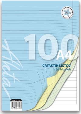 - zavitek: 100 barvnih listov oz. 4 x 25 (modra, rumena, bela, zelena)