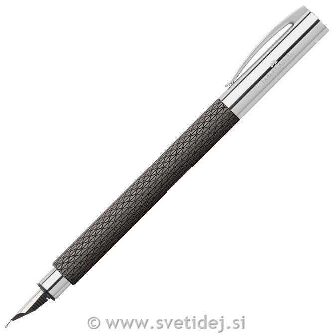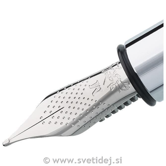 telo svinčnika je izdelano iz dragocene smole z vtisnjenimi linijami za moderen videz; pokrovček s sponko je izdelan iz kromiranega poliranega kovine, konica pa iz nerjavečega jekla; debelina konice M (medium); lahko se uporablja klasična patrona ali črpalka Faber Castell; v darilni škatli