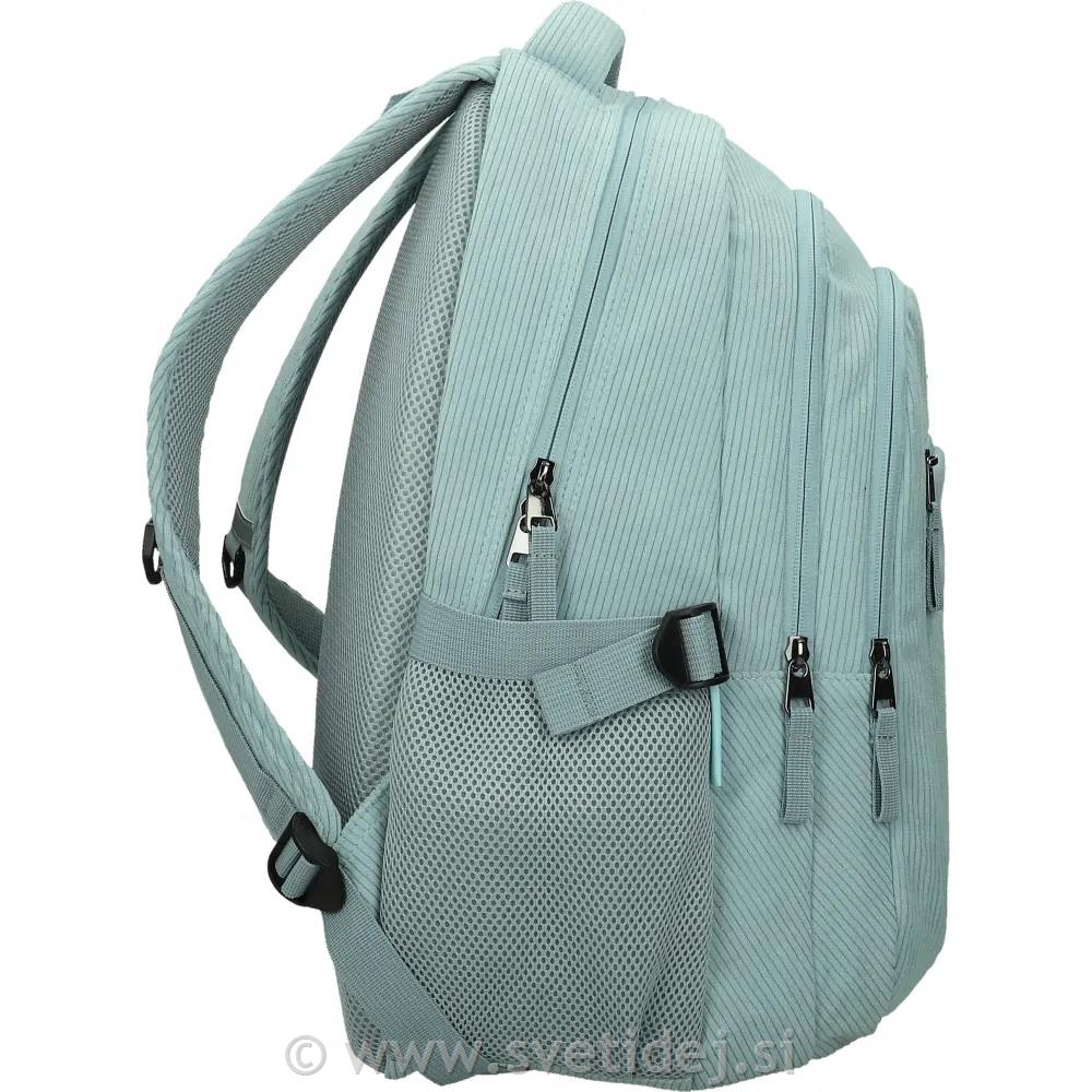 Nahrbtnik ima mehke in oblazinjene naramnice iz trpežnega materiala ter poseben predel za prenosni računalnik. Hrbtni sistem z mrežastim oblazinjenjem zagotavlja dober pretok zraka, nahrbtnik pa je opremljen s trpežnim in velikim ročajem. Na naramnicah in sprednjem delu so odsevni deli za večjo vidnost. Ob straneh sta dva žepa za steklenici, naramnice pa imajo nastavljivo zaponko. Material je 100 % brez PVC-ja. Dimenzije nahrbtnika so 34 × 22 × 45 cm.