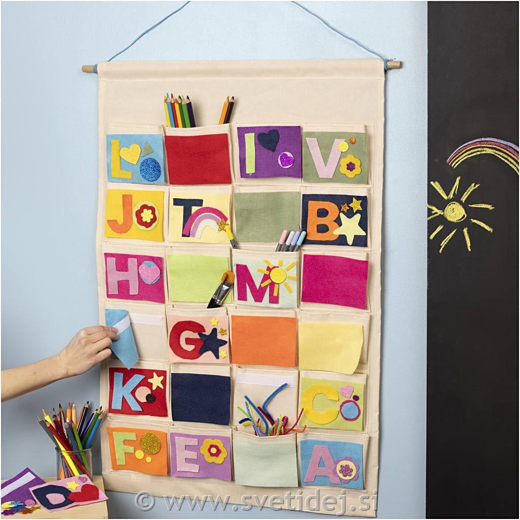 Praktičen organizator iz debelega platna z žepi in plastificirano zadnjo stranjo za boljšo stabilnost. Na vrhu organizatorja je ohišje z okroglo leseno palico za obešanje. Idealen je za shranjevanje vseh vrst majhnih predmetov ali adventnega koledarja itd. Lahko ga okrasite s tekstilnimi markerji, barvami za blago itd.