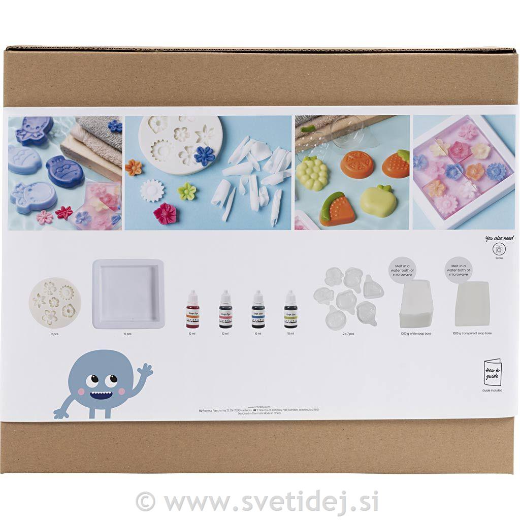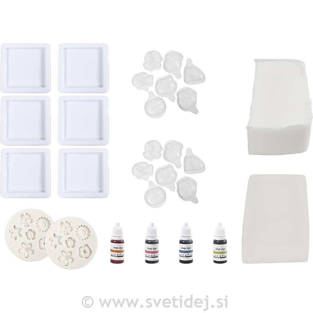 Vsebina: Milna osnova, modelčki za milo, barva za milo.