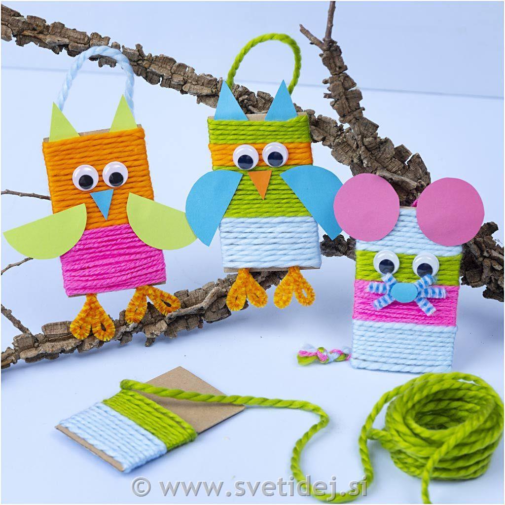 Kdo je rekel, da je preja samo za pletenine? S tem kompletom lahko prejo uporabite tudi za izdelavo živali v ovitkih. Živali so majhne, ??barvite in neverjetno enostavne za izdelavo. Najprej ovijte prejo okoli kartonskih kosov, nato pa iz kartona in čistilcev za pipe ustvarite podrobnosti. Na primer, sove okrasite s kljuni in krili, miške pa z repi in brki – in poglejte, kako ljubke postanejo.