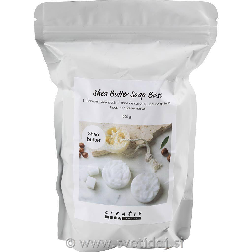 Milna osnova z negovalnim karitejevim maslom, pripravljena za taljenje in oblikovanje. Popolna za domačo izdelavo mil z vašimi barvami.