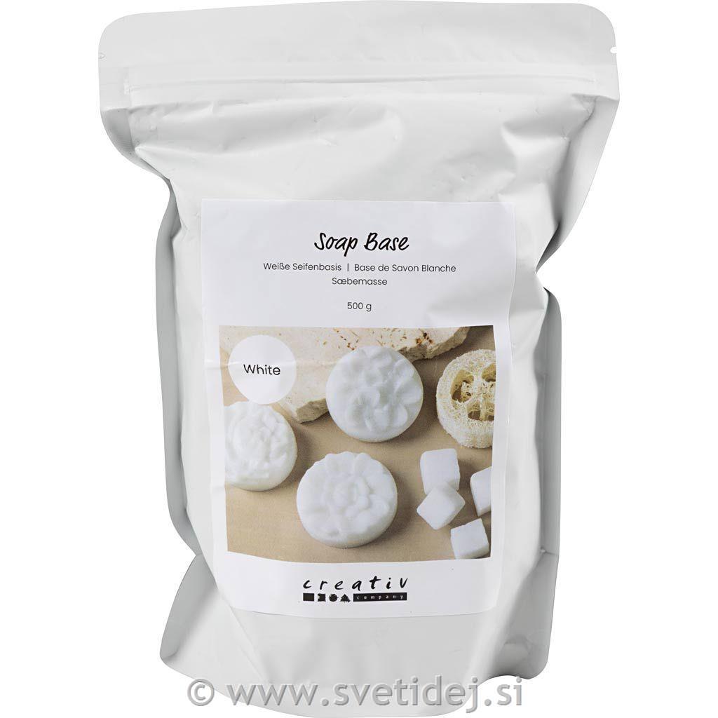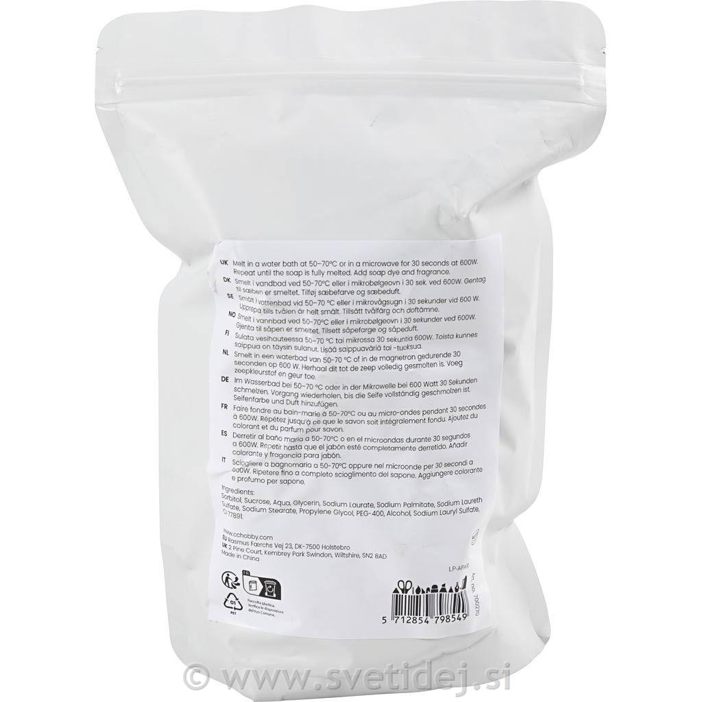 Bela milna osnova, pripravljena za taljenje in vlivanje v kalupe. Idealna za domača mila z barvami.