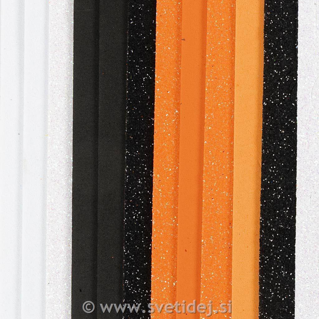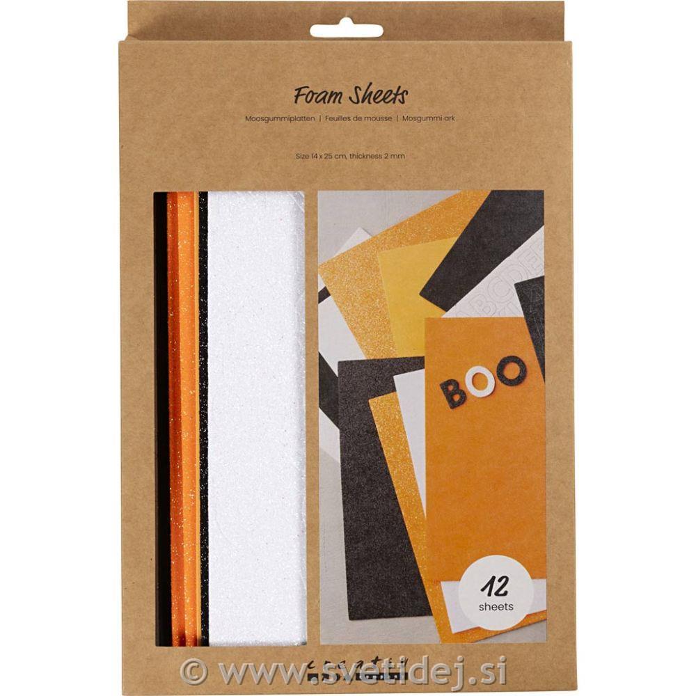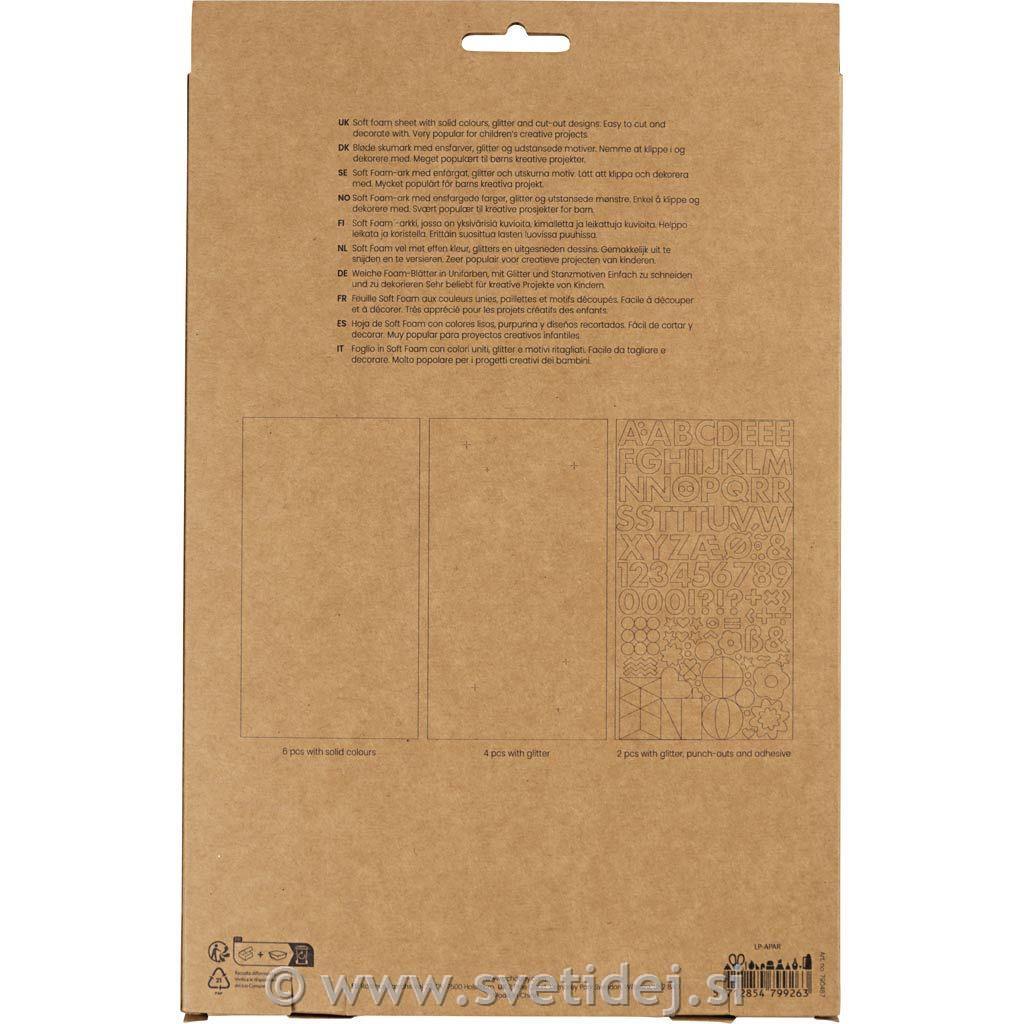 Mehka penasta plošča z enobarvnimi, bleščečimi in izrezanimi vzorci. Enostavno za rezanje in okraševanje. Zelo priljubljena za otroške ustvarjalne projekte.