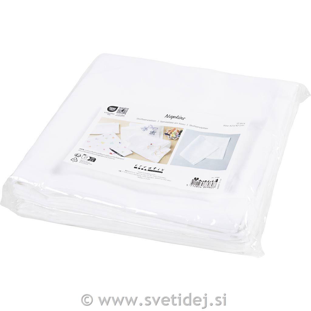 Beli platneni prtiček iz 100 % bombaža, pripravljen za okraševanje s tekstilnimi flomastri ali vezenjem. Popoln za vse, ki imajo radi osebno namizno dekoracijo.