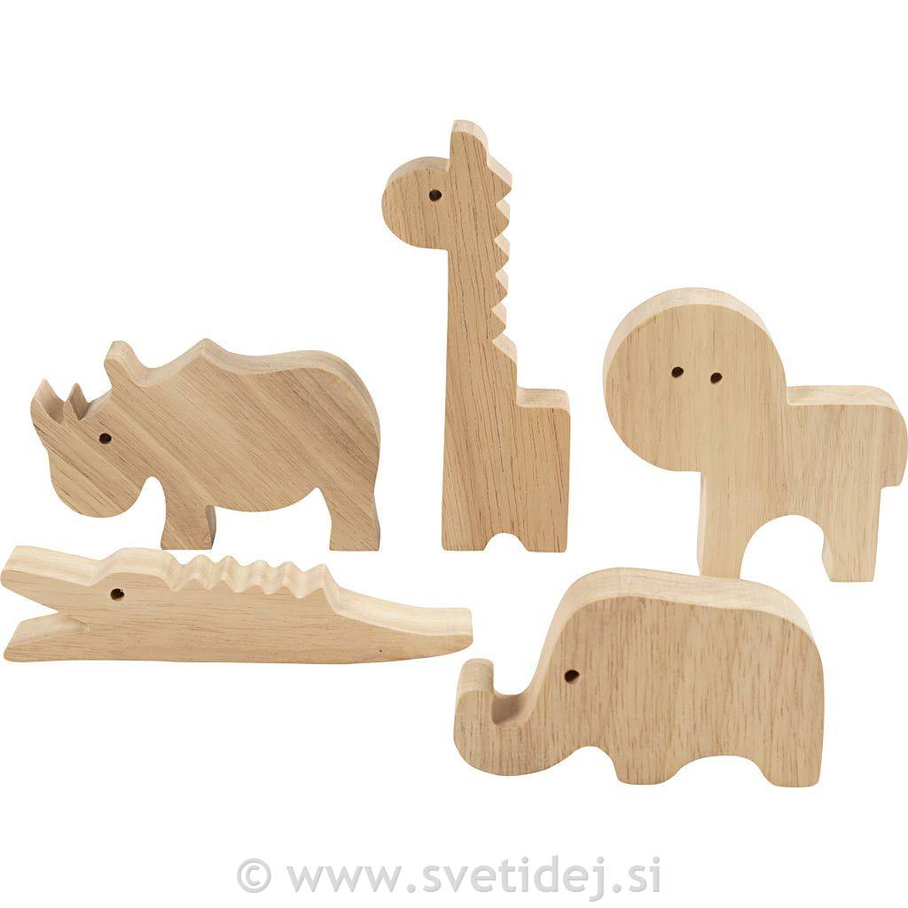 Čudovite živali iz masivnega lesa, ki jih lahko otroci okrasijo in prilagodijo. Popolne tako za igro kot za dekoracijo.
