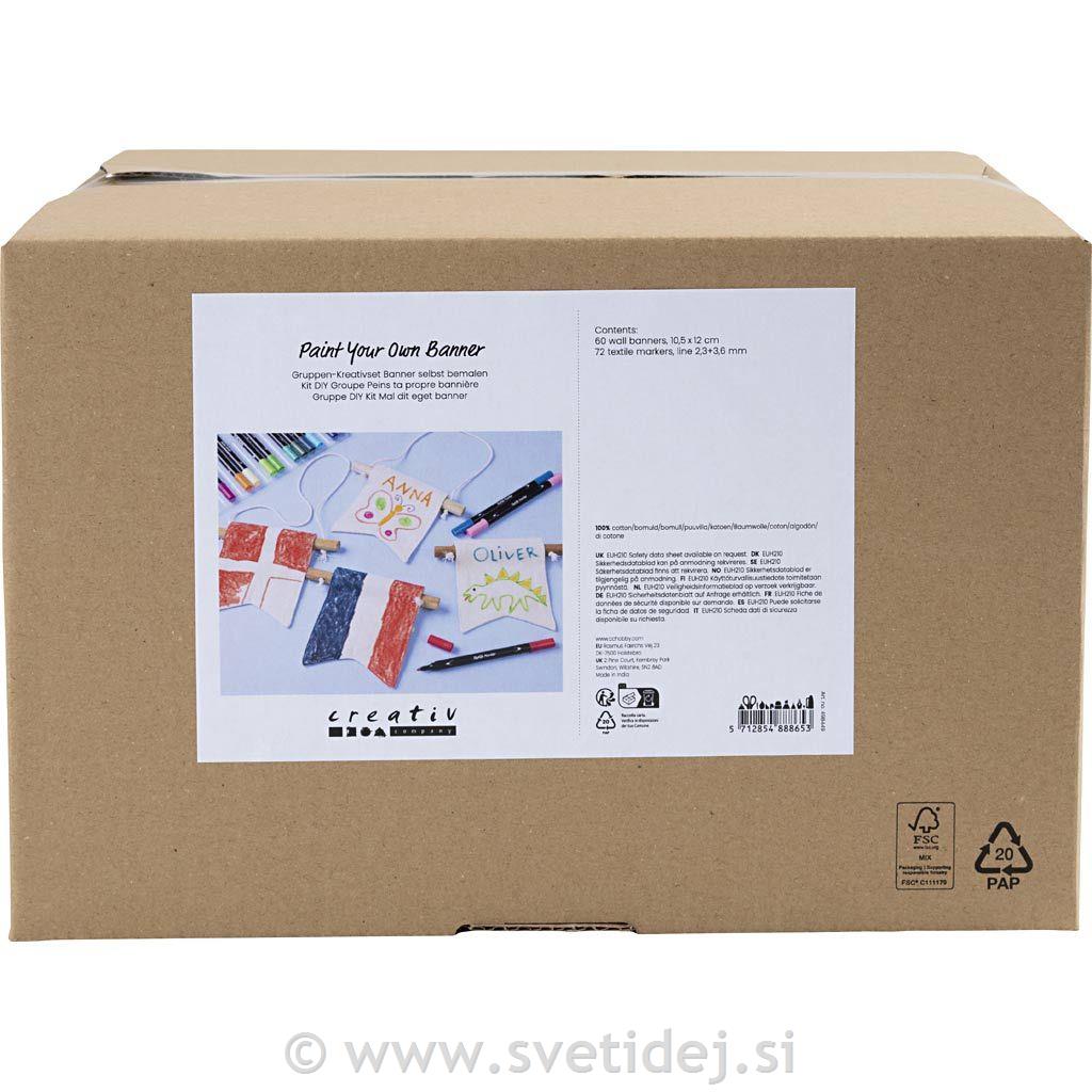 Vsebina: 60 stenskih transparentov in 72 tekstilnih flomastrov.