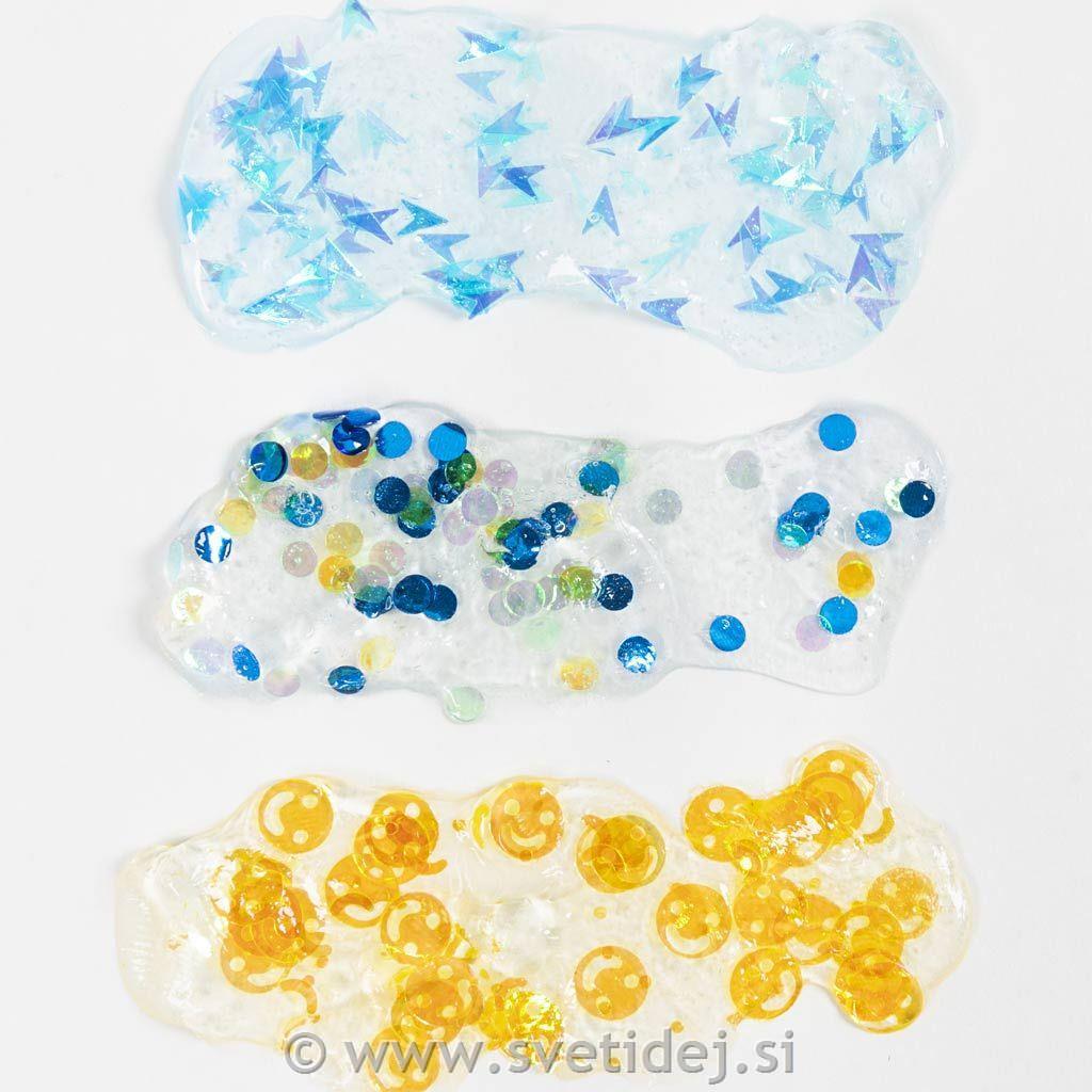 Prozorna modelirna masa z barvitimi bleščicami v zabavnih vzorcih. Popolna za okraševanje in prekrivanje predmetov. Oprime se številnih različnih površin in se posuši v trd končni izdelek.