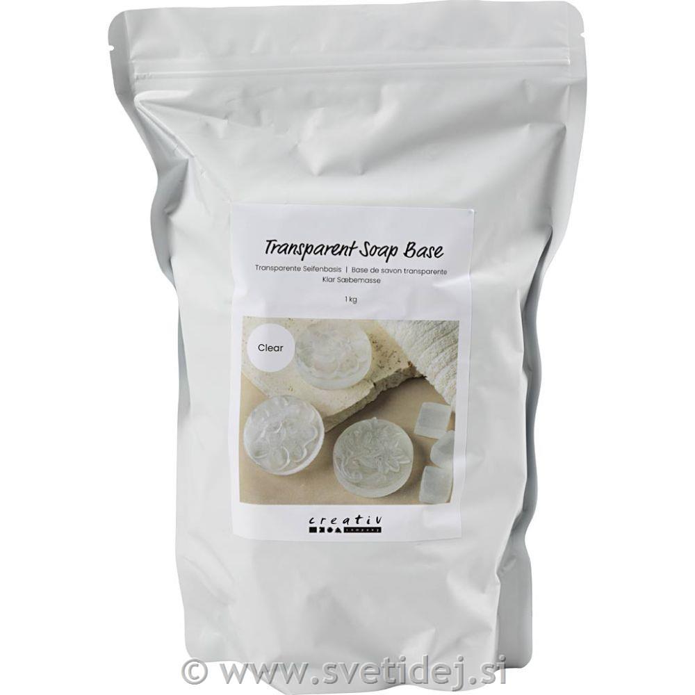 ransparentna mila osnova z glicerinom – pripravljena za taljenje in vlivanje v kalupe. Popolna za domačo izdelavo mil z vidnimi detajli.