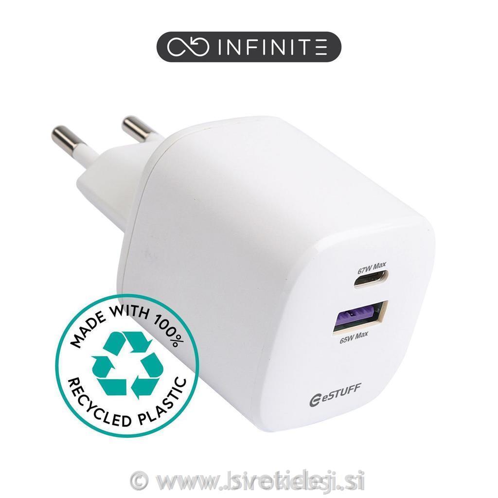 INFINITE USB-C polnilec EU PD 67W GaN - bel - 100 odstotno reciklirana plastika