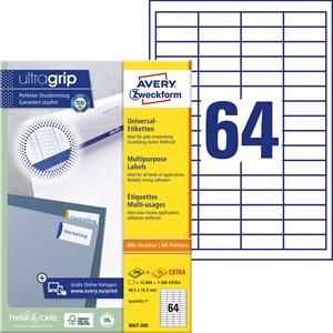 Etikete Avery Zweckform 3667 v beli barvi so namenjene označevanju zvezkov in knjig. Z njimi pa lahko označimo tudi druge predmete, ki zahtevajo posebno pozornost, saj etikete izboljšajo opaznost in povečajo ločljivost. Zaradi tehnologije QuickPEEL so etikete preprostejše za odlepljenje od podlage. V zavitku je 200 listov na katerih se nahaja 12800 etiket. Dimenzije etikete znašajo 48,5 x 16,9 mm.